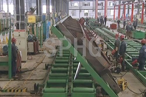 采用自動(dòng)定位方式,所有工位均采用自動(dòng)焊接。整條生產(chǎn)線采用滾輪輸送方式,在生產(chǎn)過(guò)程中,盡量避免行吊在工件上的使用,節(jié)省了行吊的使用時(shí)間,提高了工作效率。