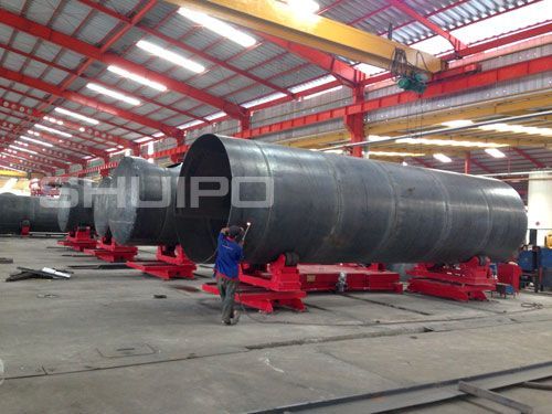 自調(diào)式異形筒體滾輪架是一種適用于焊接管道、容器、油罐等圓筒形 矩形工件的專(zhuān)用焊接輔助機(jī)械,廣泛應(yīng)用在制管業(yè)、壓力容器制造業(yè)、金屬結(jié)構(gòu)焊接加工業(yè)、重型機(jī)械制造業(yè)等的現(xiàn)代加工行業(yè)中。我公司滾輪架的滾輪旋轉(zhuǎn)采用交流電機(jī)驅(qū)動(dòng)、變頻調(diào)速,具有調(diào)速范圍寬,轉(zhuǎn)動(dòng)平穩(wěn)性好,低速特性硬等特點(diǎn)。與操作機(jī)、焊接變位機(jī)、埋弧焊機(jī)等設(shè)備配合使用,可對(duì)工件進(jìn)行環(huán)縫焊接及縱縫焊接,可提高焊接生產(chǎn)速度并使焊接質(zhì)量保持穩(wěn)定,顯著減少了焊接輔助時(shí)間、降低了工人的勞動(dòng)強(qiáng)度、改善工作環(huán)境、提高生產(chǎn)率。