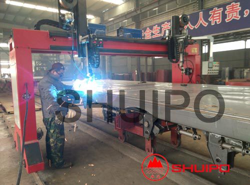 工作中的半掛車底板自動(dòng)焊接機(jī)(激光底板焊接機(jī))