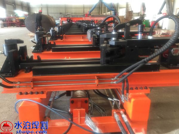 可同時(shí)加工兩件大梁,兩側(cè)互不干擾;鵝頸處可直接壓彎成型;翼板、腹板可隨意調(diào)節(jié);配有大梁升降輸送滾輪。