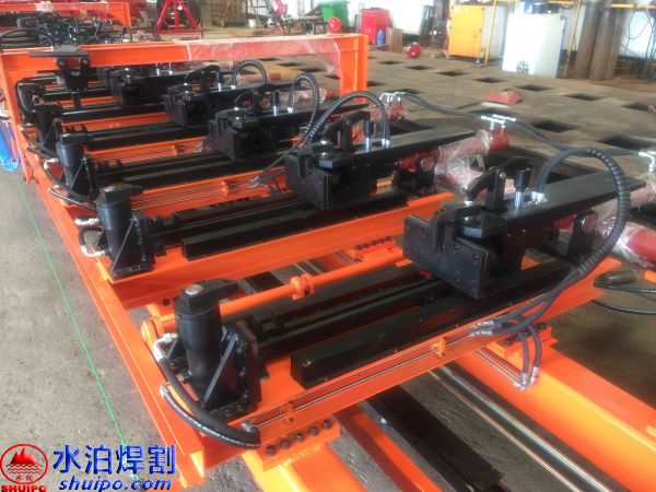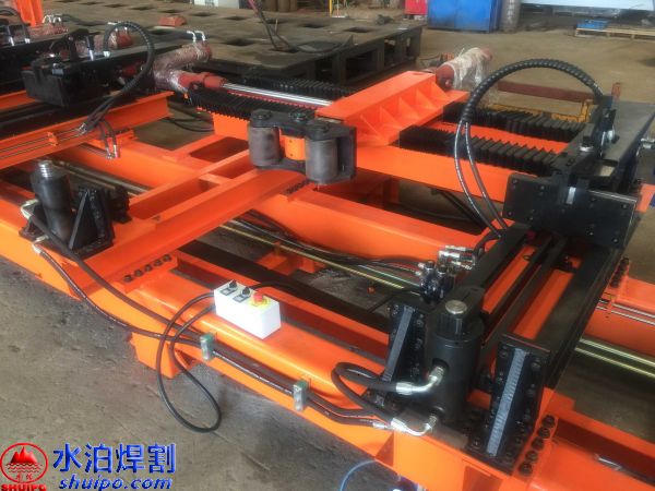 液壓縱梁點(diǎn)固工裝可同時(shí)加工兩件大梁,兩側(cè)互不干擾,適用于多種類(lèi)型,鵝頸處可直接壓彎成型增加效率,翼板、腹板可隨意調(diào)節(jié)適用更多大梁,上下翼板采用旋轉(zhuǎn)油缸壓緊可防止翼板焊接時(shí)變形,腹板配有壓緊機(jī)構(gòu),工裝配有大梁升降輸送滾輪方便工件工位之間的輸送。